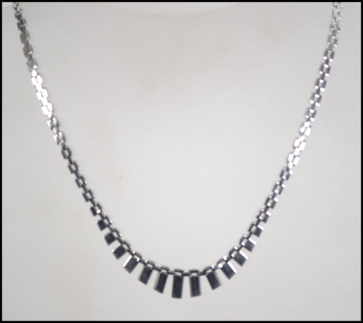 A hallmarked 9ct white gold Cleopatra link chain with twin hook clasp. Hallmarked Sheffield. Measures 17 inches. Weight 14.5g