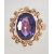 An early 20th century 15ct gold ring set with a purple oval cut stone, mounted in a collet setting surrounded by scroll hearts with rasied pierced shoulders. Unmarked tests 15ct gold. Size S. Weight 6.6g