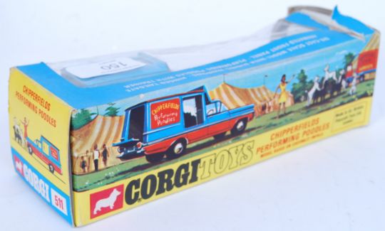 An original vintage Corgi Toys diecast model Chipperfield's Circus set 511 - Performing Poodles. The model appearing very near mint, and complete, within the original box. (Box 6/10). Rare.