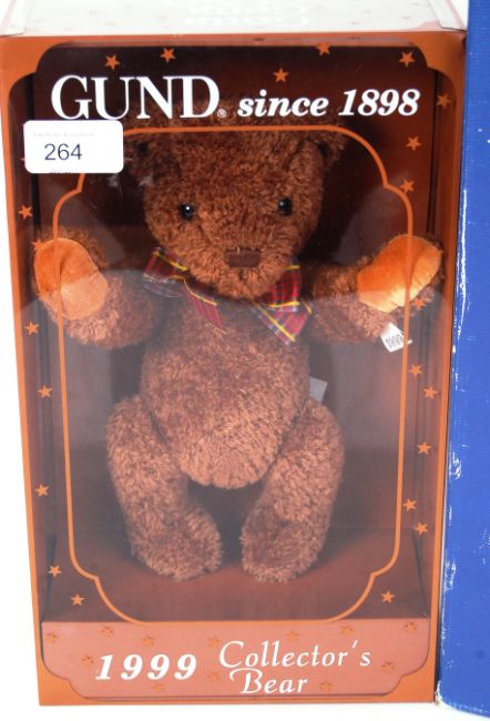 Two collectors teddy bears - the first being a 20th Anniversary ' Golden Bear ' by Golden Bears - mint in the original box, signed by creator, with certificate. The other being a 1999 Collectors Gund Bear, within the original box.