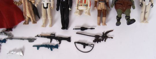 A collection of assorted vintage Star Wars action figures. All loose, to include Darth Vader, Ewoks, Luke Skywalker, Chewbacca, Han Solo, Leia etc. Some with weapons. x33 figures in total.