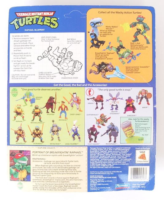 An original vintage Playmates made Teenage Mutant Ninja Turtles carded action figure ' Breakfightin' Raphael .' Unopened, on original unpunched card back.