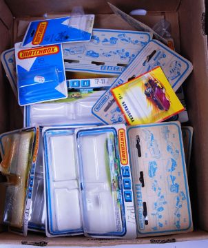 A large collection (x2 boxes) of original vintage 1980's Matchbox diecast model EMPTY boxes / card backs. To include Matchbox 900, Motor City, sets etc. Note: From an unusual collection of original 1970's / 1980's Matchbox diecast model car blister packs / card backs. All are EMPTY, but all are carefully opened to remove the model. Most card backs, although opened, are usually very good to near mint. Buyers are reminded to satisfy themselves as to individual item condition, as condition on some, will vary.
