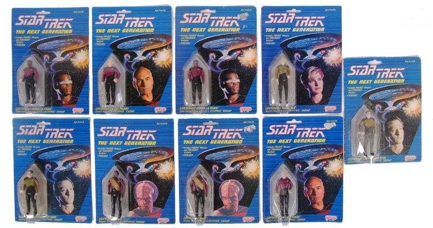 A set of 9x Galoob made Star Trek The Next Generation carded action figures. All sealed, unopened.