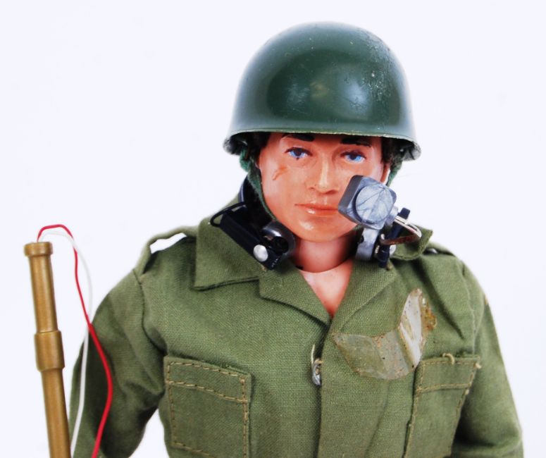 An original vintage Palitoy made ' Mine Clearing ' Action Man figure. With original cardboard signs, headset etc. Appears to be complete. Note: From a private collection of loose but largely complete Action Man dolls / action figures. Each with accessories / weapons and full uniforms. Unboxed, and kept carefully in plastic storage boxes for some time. Condition is generally very good, but some suffer from deterioration to hands and dust from display. Buyers are reminded to satisfy themselves as to completeness and condition of individual lots prior to bidding. Wonderful collection.