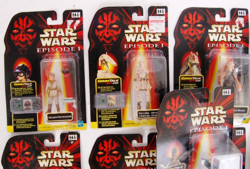 A collection of 11x original Star Wars Episode One carded action figures, by Hasbro. All sealed, unused.