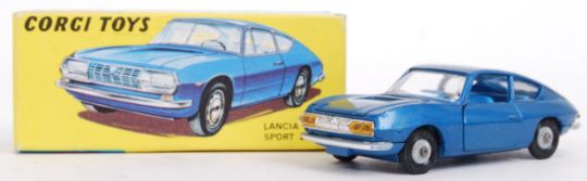 An original vintage Corgi Toys diecast model 332 Lancia Fulvia Sport Zagato. Mint+ (as new) condition model, in a very near mint original box. Complete with Corgi Club slip.