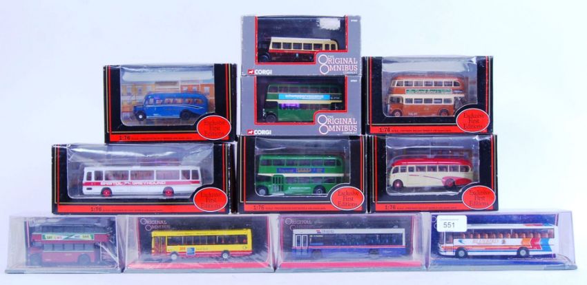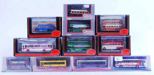 A collection of 11x boxed diecast model buses - to include Corgi Original Omnibus, EFE etc. Some sealed / unused. All mint, within original boxes.