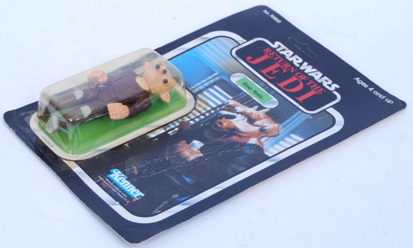 An original vintage Star Wars Kenner made carded action figure ' Ree Yees ' - on an original Return Of The Jedi 77 card back. Unpunched. Sealed, untouched figure.