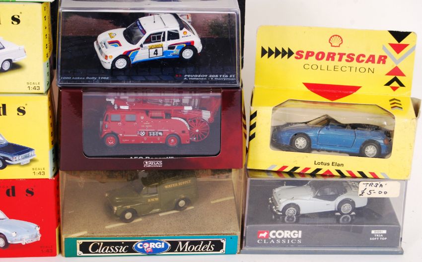 A collection of assorted boxed diecast models to include ERTL, Vanguards, Dinky, Atlas Editions and others.