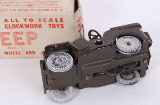 A vintage original Minic tinplate clockwork ' Jeep ' No. 1. Within the original box.