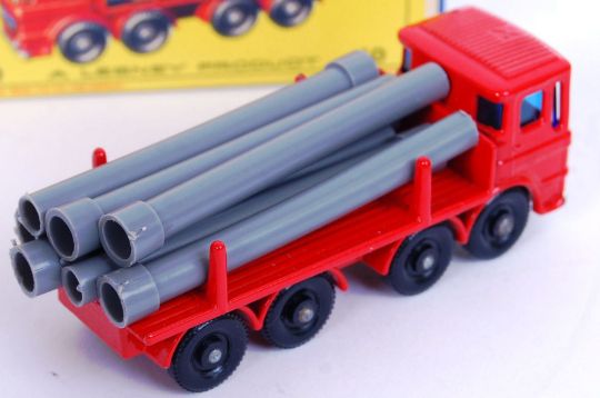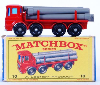An original vintage Matchbox Lesney diecast model No. 10 ' Pipe Truck.' Appearing very near mint, with silver base and grille. Within the original box. With pipes.