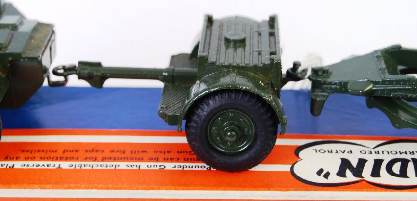 An original vintage Crescent Toys made diecast model Saladin Armoured Patrol military tank and trailer. Appears complete, and generally very good to near mint condition. Within a good original box.