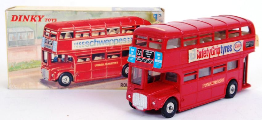 An original vintage Dinky diecast model 289 Routemaster Bus. Mint, within the original box. Decals peeling / glue dried a little, otherwise mint.