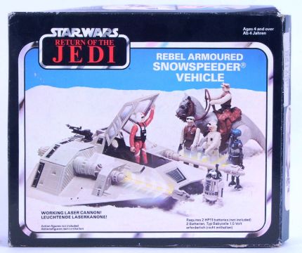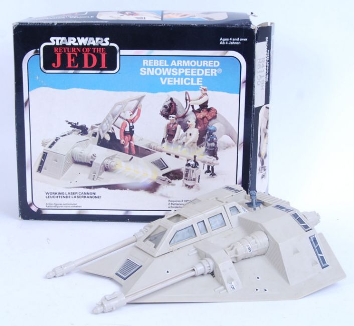 An original vintage Star Wars Palitoy made ' Rebel Armoured Snow Speeder ' within the original blue-sky box. Vendor assures us electrics are working, but item is untested by us and no guarantees can be given. Within the original box.