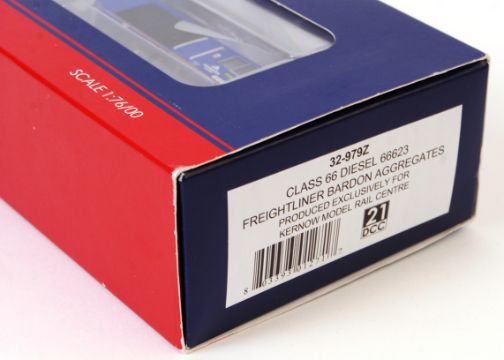 A Bachmann 00 gauge railway trainset locomotive 32-979Z Class 66 Diesel 66623 Bardon Aggregates. Produced exclusively for Kernow Model Rail Centre. DCC ready, Blue Riband. Appears unused and complete. Rare. Note: From an impressive private collection of Hornby and other 00 Gauge railway trainset locomotives. Mostly all DCC ready and all appears mint+ and unused. Many still with tissue / inner wrapping. Buyers are reminded to satisfy themselves as to the condition of individual lots prior to bidding, as this information is for general guidance only.