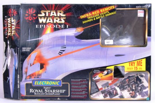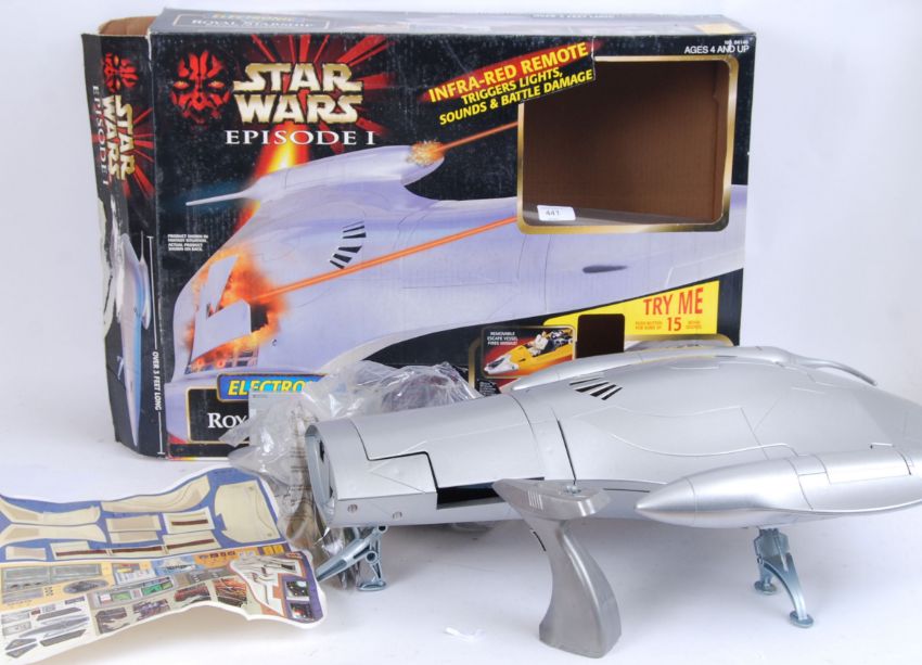 A Hasbro Star Wars Episode One playset ' Electronic Naboo Royal Starship .' Appears to be complete (but is not checked) and loose, within the original box. With unused decal sheets. With instructions.