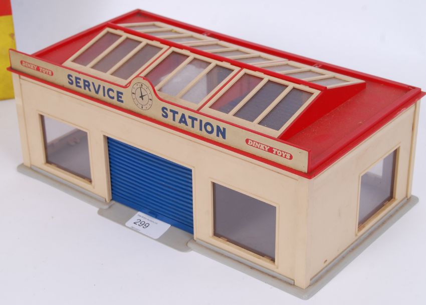 A rare original vintage Dinky Toys made 785 Service Station diecast car display / playset. Appears to be complete, with decals, within the original box (generally very good, but grubby). Rare.