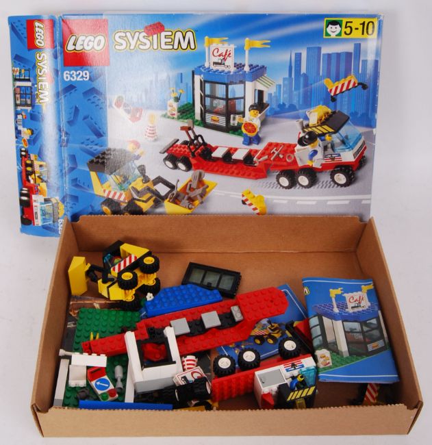 Two vintage Lego System Town sets - 6334 Wave Jump Racers and 6329 Truck Stop. Both in original boxes. Vendor assures us sets are 100% complete (with figures and instructions). Unchecked by us, so please satisfy yourselves.