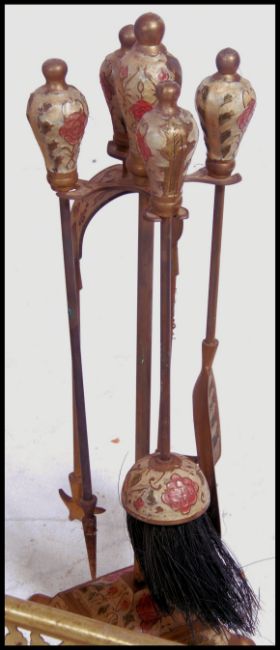 A late 19th century brass fire fender together with a lidded Art's and Craft's coal scuttle. Measures 120cm long x 22cm high.