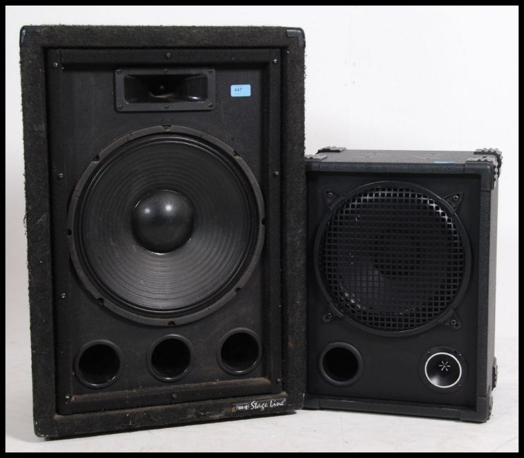 A large modern Stag Line stage speaker together with another similar in black ( see illustrations )