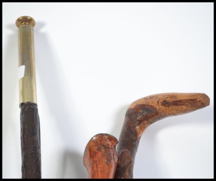 A collection of five 20th century tall walking sticks made from various woods please see images.