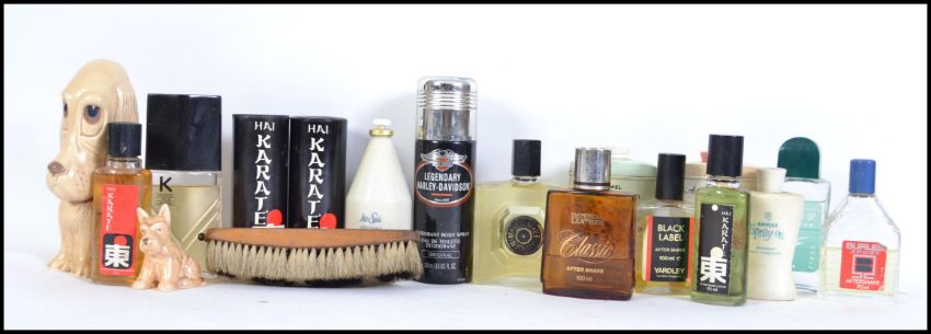 A collection of retro aftershaves and talcs to include Hai Karate, Old Spice, Denim etc please see images.