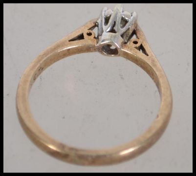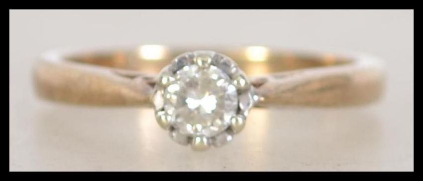 A hallmarked 9ct gold solitaire diamond ring. Diamond approx .25pts Weight 2.5g. Size M. Diamond stamp .25. Hallmarked Birmingham.