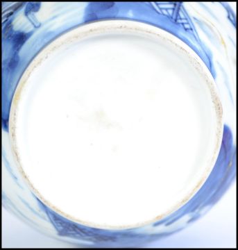 An 18th / 19th century Chinese blue and white early teapot in the willow pattern. Together with a celadon glazed teapot with infuser. The tallest measures 12cm high.