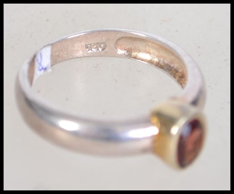 A ladies silver and ruby garnet stone dress ring having central oval cut stone. Size M. Weight 2.9g