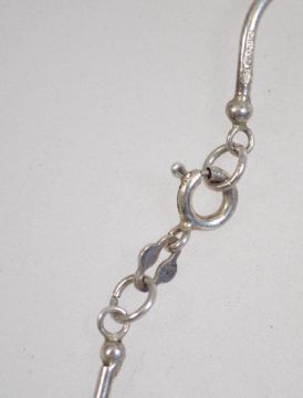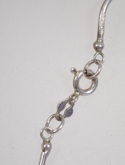 A silver 925 rib bone and ball link necklace chain having a spring hoop clasp. Chain measures 18 inches and weighs 12.6 grams.