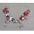A Miss Rhoana Sutton silver 925 charm fox tail bracelet with red and white ball charms, silver heart charms and others. Total weight 27.5 grams chain measures 7 inches.