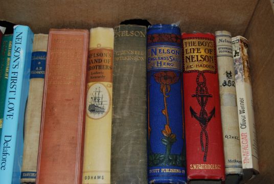 A large quantity of books all relating to Admiral Nelson or the Battle Of Trafalgar. Some antique publications, others contemporary. Various titles and editions. Some firsts.