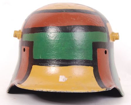 An original WWI First World War era German army camouflage helmet. Restored / repainted condition.