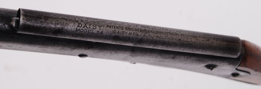 An original vintage rare Daisy air gun No195 'Buzz Barton Special.' Makers marks to wooden stock and top of sight. 89cm long