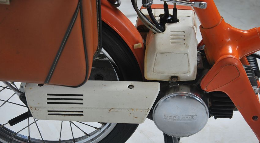 A fabulous vintage classic 1970's Honda Express motorcycle / moped. Registration number XOU 84T, 1979 model. First registered in 1998. Believed to be used by Fowlers as a display model in the window for many years, hence the late registration. One owner (the vendor). Frame number NC502150916, engine number NC502151109. Classic retro orange colour, complete with saddle bags to rear. 49cc original engine. Comes with log book and keys. Runs, and drives as it should. All electrics working. Has been off the road for some time and used exclusively for local motorcycle shows and displays. Well maintained. A true classic original motorcycle. Current mileage at 40 miles. Comes with logbook, set of keys, old-style log book and a display card for the motorcycle when it was on show in a classic bike show. Rare. Note for bidders: Given the nature of the motorcycle, buyers are reminded to satisfy themselves as to condition and accuracy of the moped prior to bidding. No guarantees are implied, nor given.