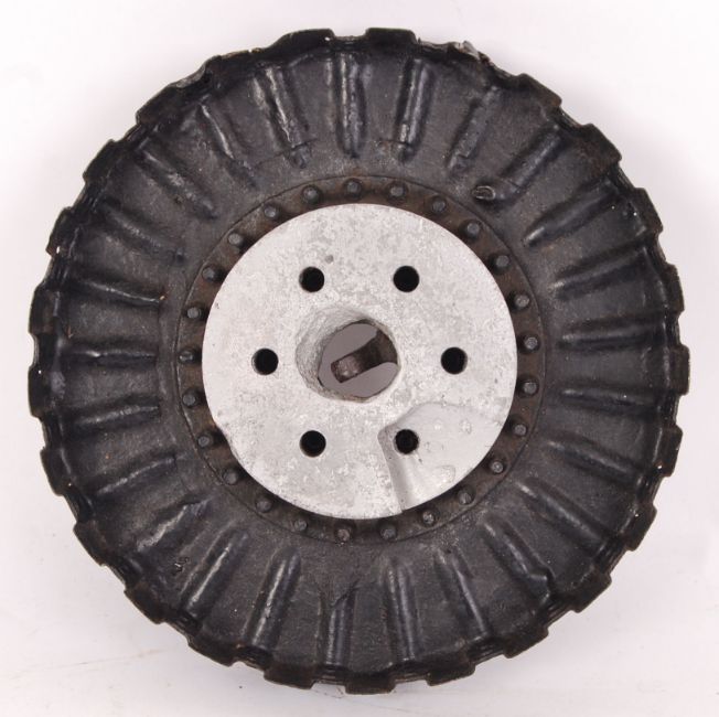 An original WWI First World War era Lewis Machine Gun magazine. Of steel construction, with aluminium / alloy centre spindle. Measures approx 21cm in diameter.