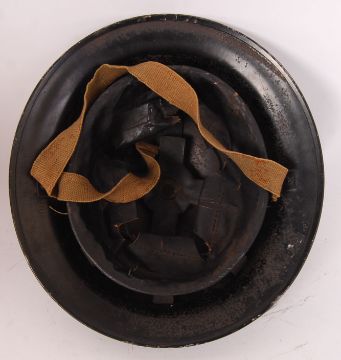 An original WWII Second World War era ARP / Fireman's helmet. In black, with original inner liner and chin strap present.