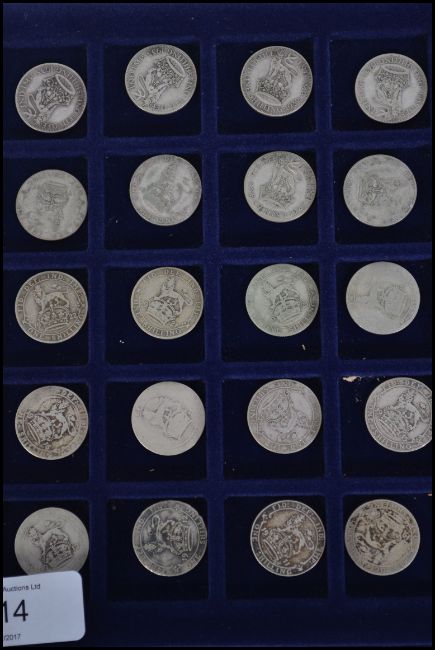 Coins - A collection of forty silver shilling coins dating from the 19th century, presented within a coin collectors tray.