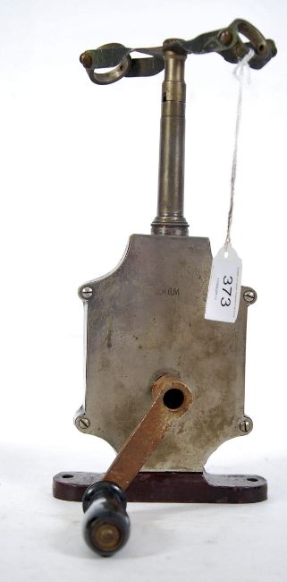 A 19th century German patented manual centrifuge test tube instrument with cast metal body in burgandy with gilt coachlining having crank handle verso.  Embossed stamp DRGM