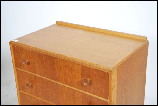 A 1970's Meredew natural oak retro chest of drawers. The upright bank of drawers with turned knob handles ( see illustrations )