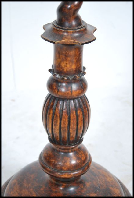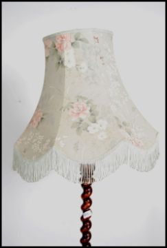 An Edwardian fruitwood standard lamp  having a stunning barley twist column with shade surmounted atop. The barleytwist column raised on terraced base with shaped feet