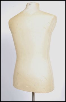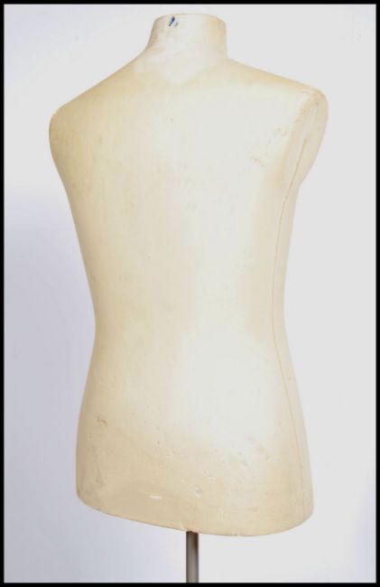 A vintage dressmakers dummy /  mannequin raised on a stunning industrial metal tubular stand on castors.