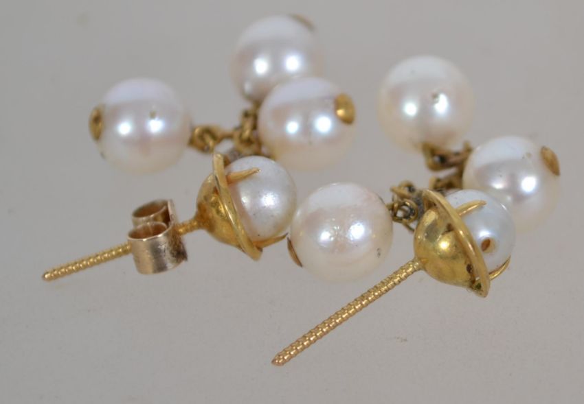 2 pairs of vintage 9ct gold pearl earrings - studs complete with the posts, each earring with good freshwater pearl. total weight 4g