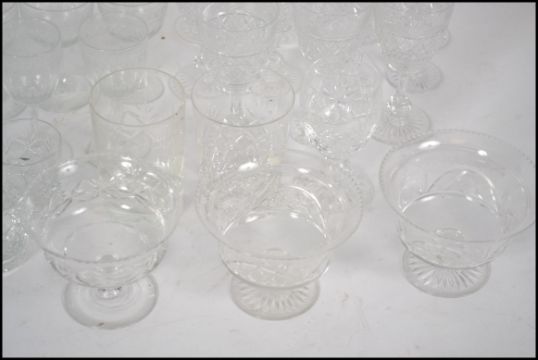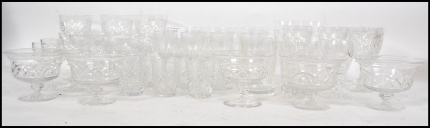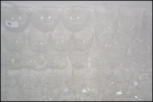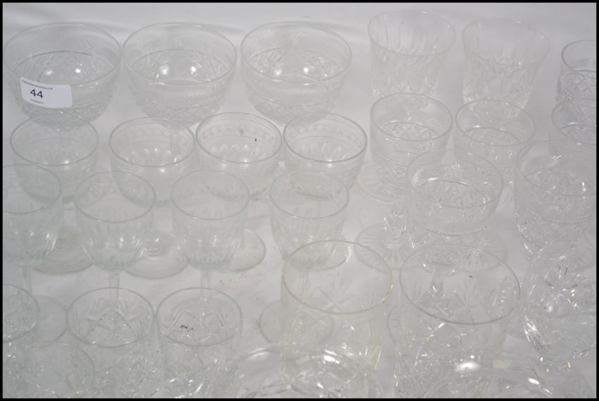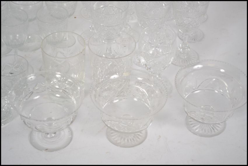 A good collection of vintage lead cut glass drinking glasses, to include wine glasses, sherry glasses, tumblers etc.