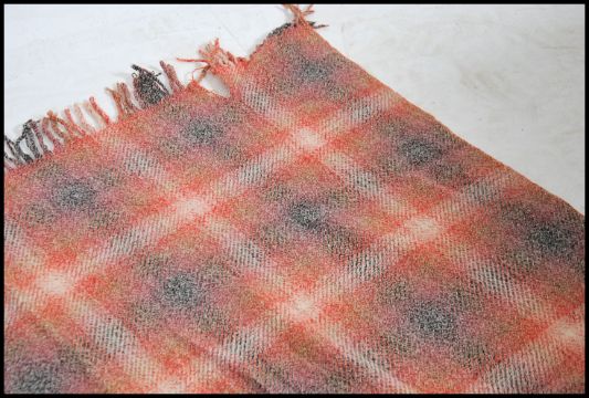 A Northern Irish vintage mid century Abercorn rug having chequered red and black design with original label. Measures 190cm high x 146cm wide.
