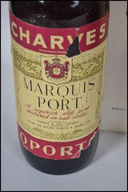 A collection of vintage and retro drinks bottles to include Charves Marquis Port, Mackinlays 12 year old Legacy whisky, Moet and Chandon champagne and others.