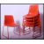 A set of six retro Robin Day style stacking chairs having a vibrant orange seat raised on orange metal tubular frames. Measures 71cm high x 41cm wide x 40cm deep.