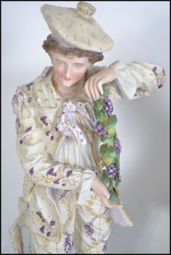 A pair of late 19th century  French bisque figures of a lady and gent A/F. Measures 54cm high.
