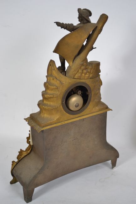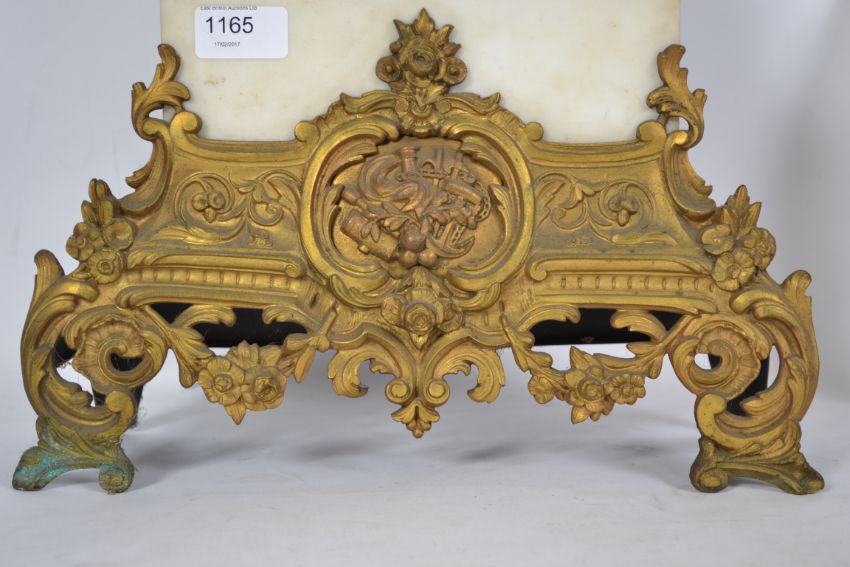 A 19th century alabaster and sevres panel mantel clock having gilt metal embellished sides and feet having an inset cylinder movement